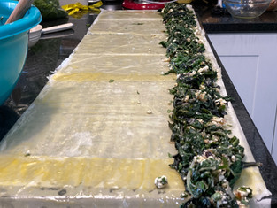 Thaw out the pastry, unwrap and lay out 3 sheets lengthways as pictured.